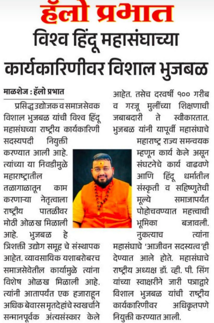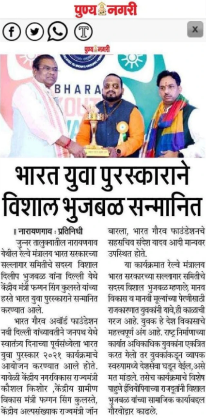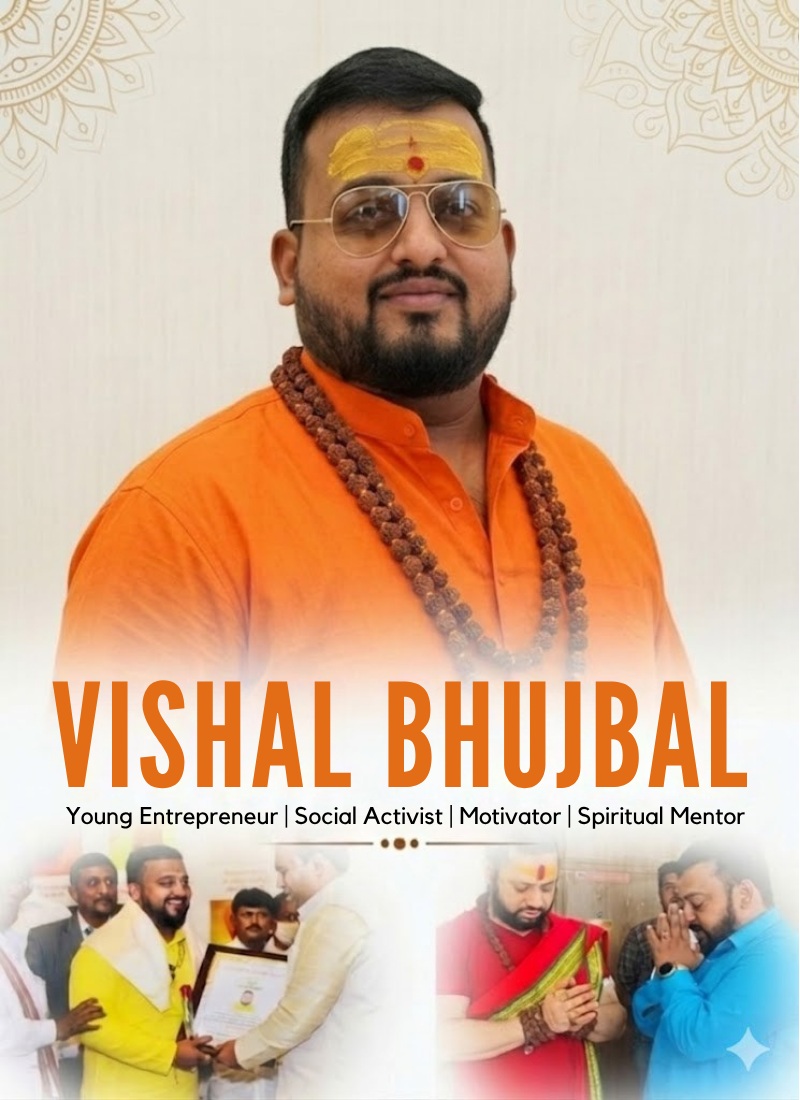 Mr. Vishal Dilip Bhujbal is a distinguished Young Entrepreneur, Social Activist, Motivator and Spiritual Mentor hailing from Pune, Maharashtra. His priorities in life are the Social, Educational, and Cultural enrichment of society, especially the YOUTH through various initiatives.