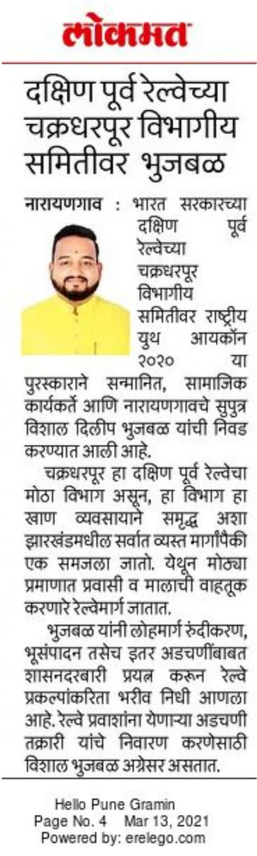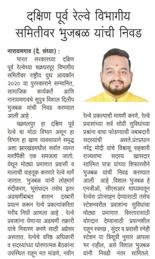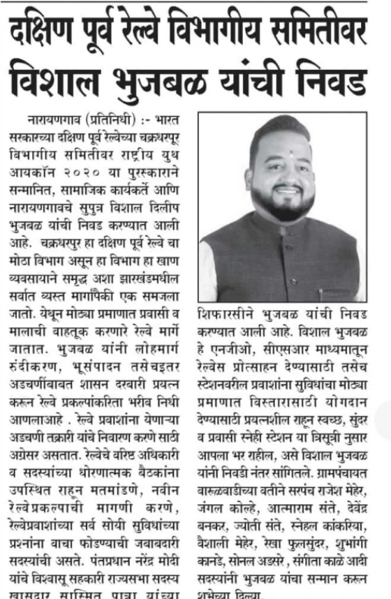 Vishal Dilip Bhujbal From Pune’s Narayangaon Is On the Government Of India’s Divisional Railway Committee